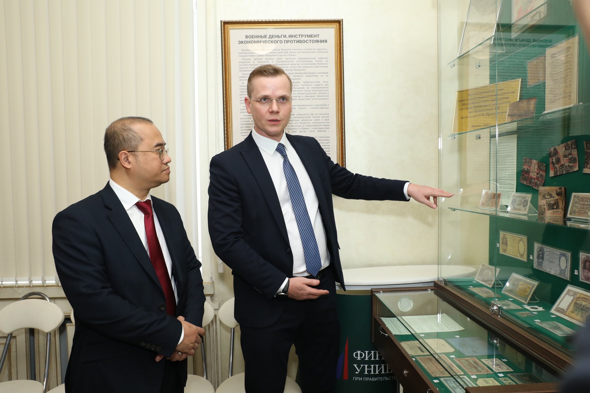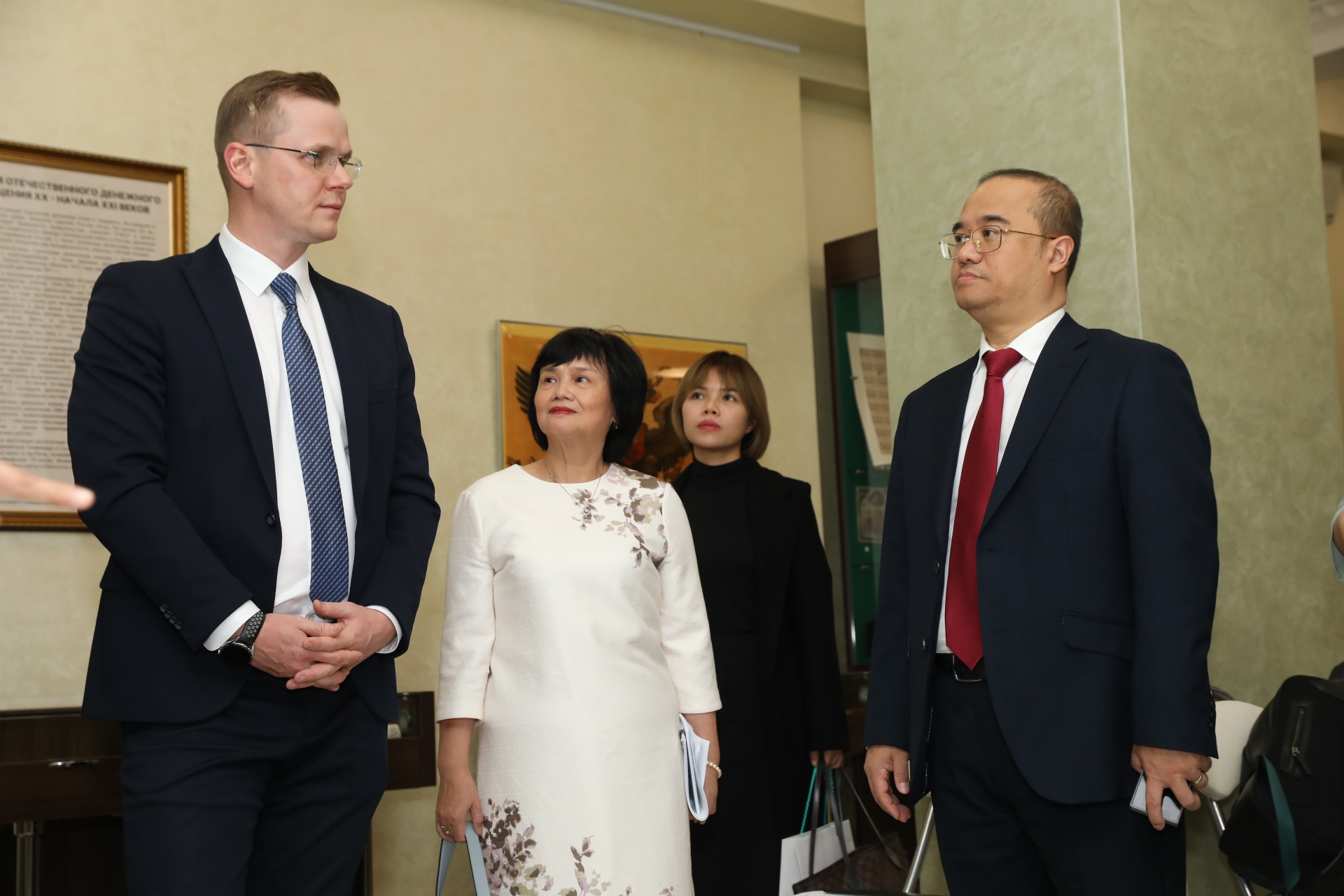 As part of their visit, the delegation also toured the Financial University Museum, which features an exhibition dedicated to the history of wartime currency, including unique banknotes issued during various military periods. The guided tour for the Vietnamese colleagues was conducted by Anatoly Kislyakov, Director of International Cooperation at the Financial University.
