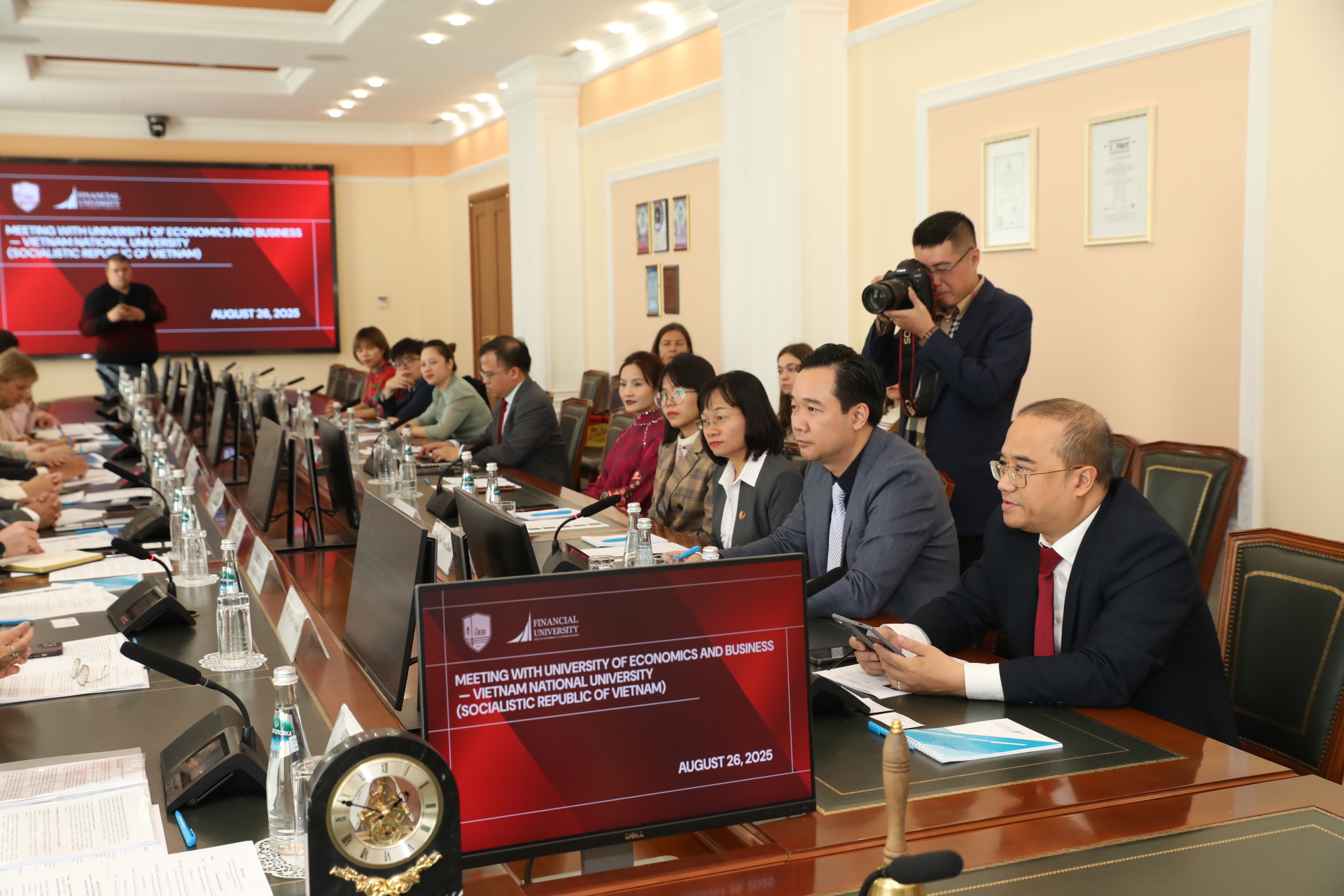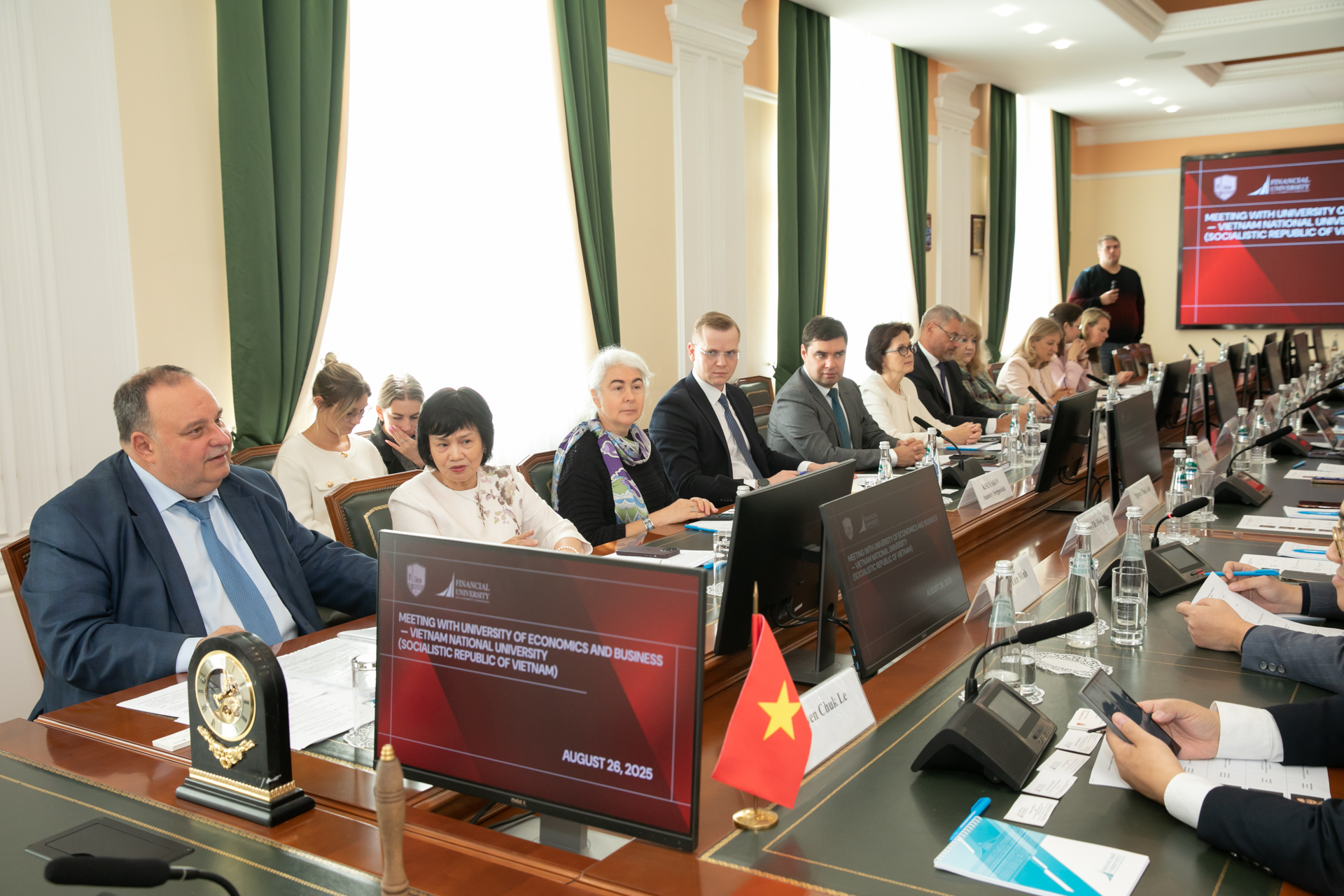 On August 26, 2025, the Financial University under the Government of the Russian Federation welcomed an official delegation from the VNU University of Economics and Business (VNU UEB). During the meeting, the parties discussed prospects for further cooperation and expressed their readiness to expand collaboration in academic and research fields.