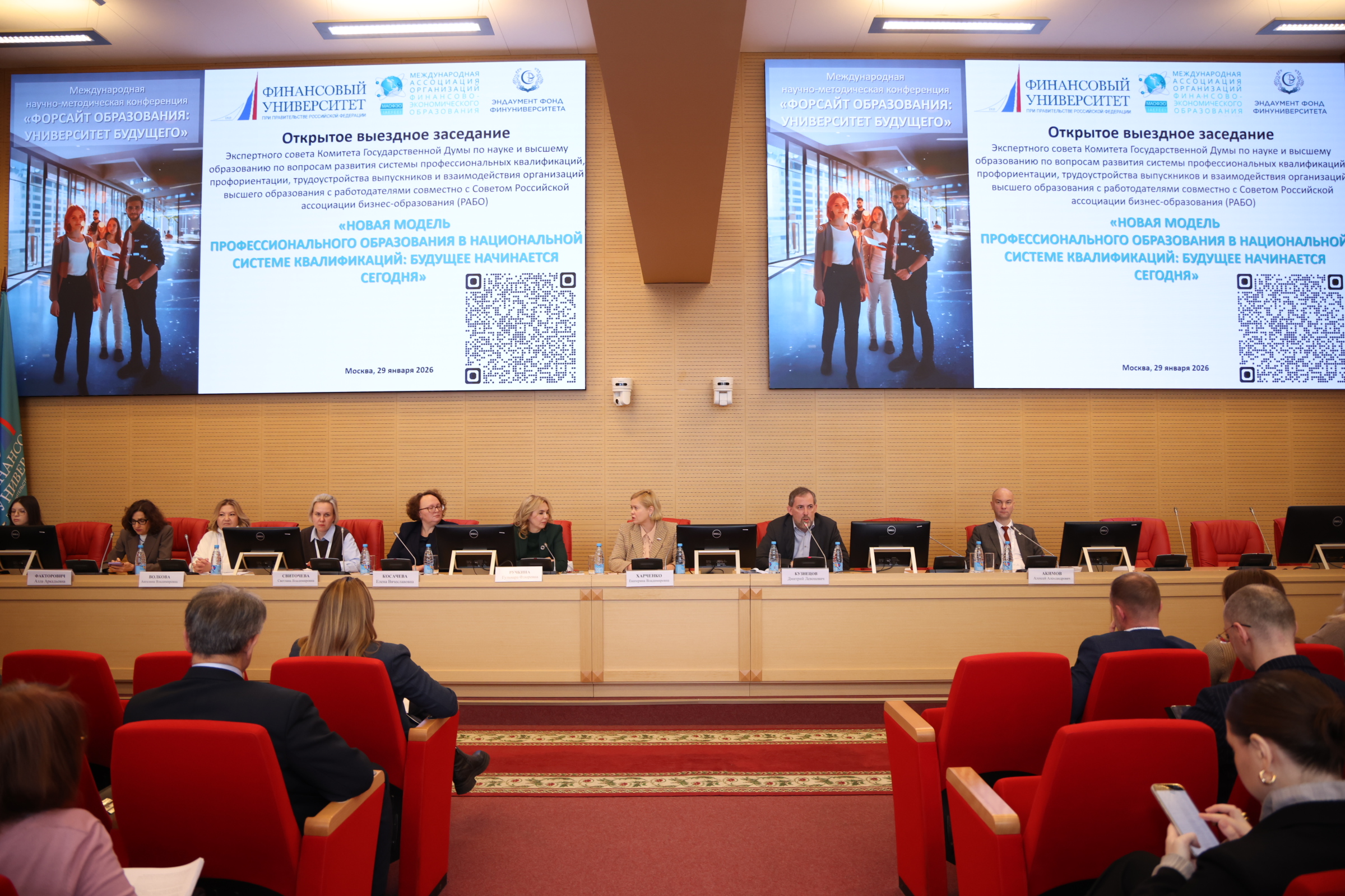 On January 29, 2026, within the framework of the International Scientific and Methodological Conference “Foresight in Education: The University of the Future,” an open field meeting of the Expert Council of the State Duma Committee on Science and Higher Education took place at the Financial University. The event focused on the development of professional qualification systems, career guidance, graduate employment, and cooperation between higher education organizations and employers, jointly with the Russian Association of Business Education (RABO). The session was titled “A New Model of Professional Education in the National Qualifications System: The Future Begins Today.”
